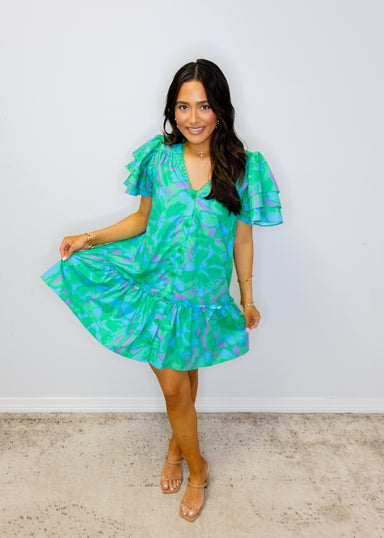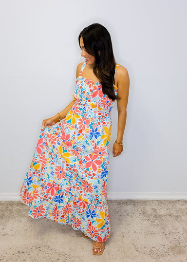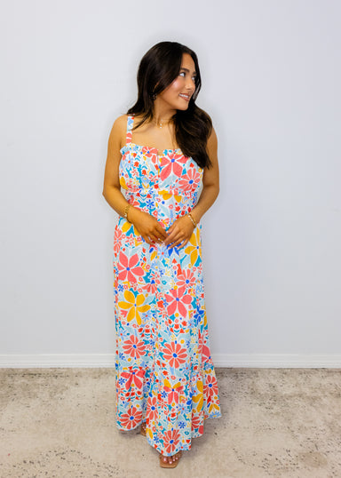Elevate your special occasion style with this charming cream floral dress. Featuring a flattering drop waist silhouette and delicate ruffle skirt, ...