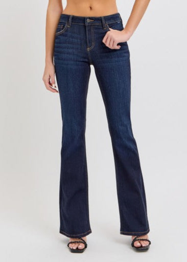 Step into your new favorite fall essential with these Mid Rise Dark Flare Jeans. Perfectly flattering for every curve, they effortlessly transition...
