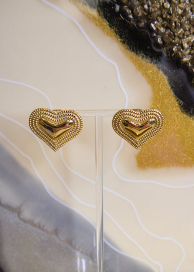 Add some sparkle to any outfit with The Gold Chunky Heart Earrings. These bold, gold earrings are perfect for day or night and are sure to make a s...