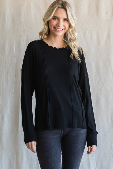 This long sleeve ribbed sweater is ready for all your fall adventures! With its natural-cut neckline, drop shoulder design, and statement kimono sl...