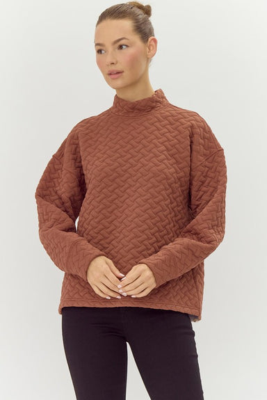 Get ready to fall in love with our Toffee Textured Mock Neck Top! With its classic style and perfect fit, this top is a must-have for your fall war...