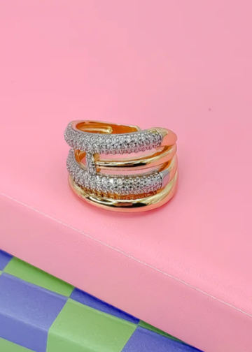 Make a bold statement with the Gold Stacked & Stunning Ring, a dazzling piece covered in sparkling pave rhinestones. Its eye-catching design ad...