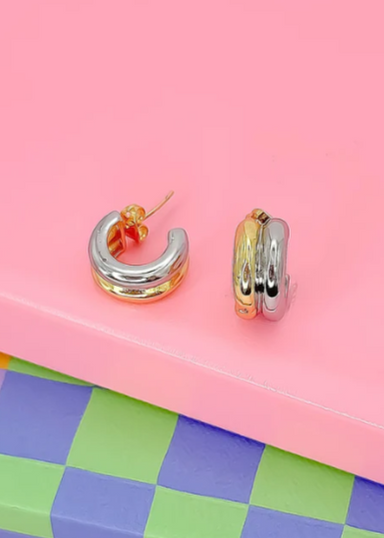 Elevate your style effortlessly with these Two Toned Huggie Earrings. Combining gold and silver tones, they add a playful twist to any outfit while...