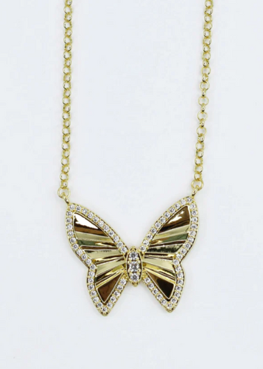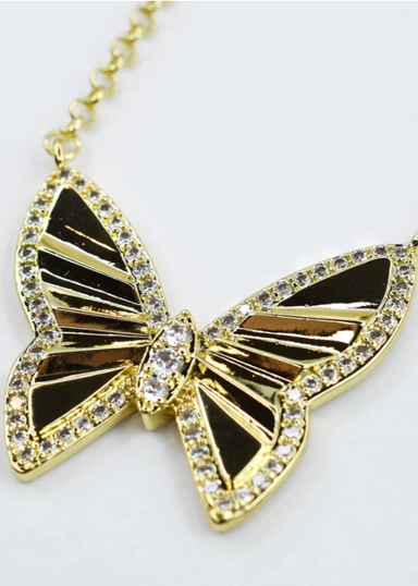 Shine bright with the Gold Radiant Flight Butterfly Necklace, a playful piece designed to keep you bold and beautiful day or night. The sparkling r...
