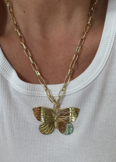 Add a touch of whimsy to your look with the Wings Of Grace Single Chain Necklace. Featuring a charming bold gold butterfly pendant, this necklace b...