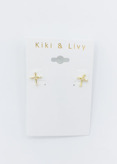 Add some sparkle to your ear game with our Point Bling Cross Studs. These studs feature a unique cross design that adds an edgy touch to any outfit...
