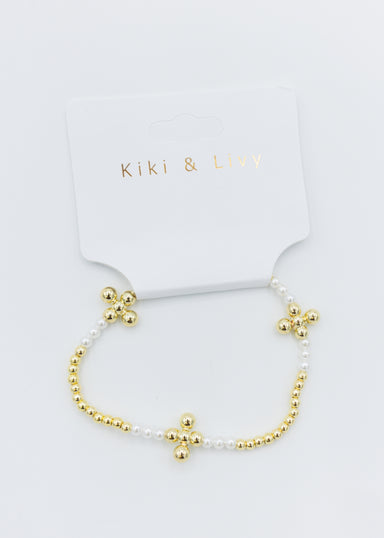 $38.95| /Add some sparkle to your wrist with our All Gold Beaded Triple Cross Bracelet. This bracelet features three unique gold cross beads, adding a touch...