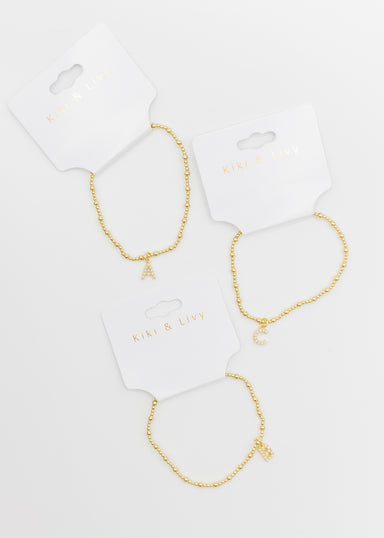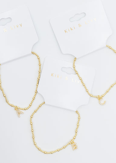 $24.95| /Add a personal touch with our Gold Beaded Small Pearl Letter Bracelet! Customize with your initial or give as a thoughtful gift. Playful and elegan...