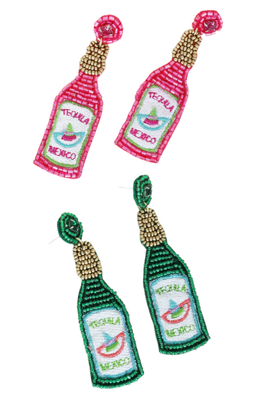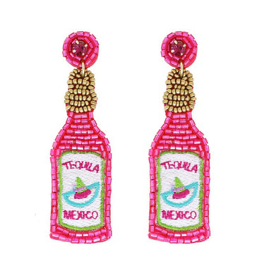 Get ready to spice up your outfit with these 2-tier jeweled Tequila Bottle Beaded Earrings! With a unique combination of embroidery and long drop d...