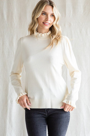 Stay cozy and fashionable in this chic ivory turtleneck 3/4 sweater! A cool-weather must have, this eye-catching knit is perfect for adding a bit o...