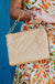 This quilted straw crossbody is so fashion forward! It has a chunky gold chain accent that is removable, and it can be used as a carrying strap as well. The nylon crossbody strap is super stylish and is also adjustable and removable. The top zipper closure leads to two open compartments as well as a third middle zippered section. It also has two smaller internal open pockets and one zippered pocket
