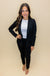 Step out in style with this Black Flap Pocket Blazer—your new go-to for adding a sharp, fun twist to any outfit. Featuring sleek flap pockets for a touch of flair, it pairs perfectly with matching pin tuck pants sold separately to complete your confident look. Dress it up or down and own the day!