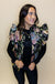 Elevate your layering game with this charming black floral jacquard vest! Featuring adorable ruffled cap sleeves that add a touch of whimsy, this piece brings instant personality to any outfit. The full zip front makes it easy to slip on and off, while functional pockets keep your essentials close. Perfect for adding dimension to your favorite tees or dresses, this vest is your new go-to for effortless style with a playful twist.
