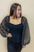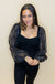 This show-stopping sweater brings the glam with shimmering metallic embellishments that catch the light from every angle. The sheer sleeves add an airy, flirty touch while the sweetheart neckline flatters your silhouette beautifully. A playful peplum hem creates movement and dimension, making this piece perfect for nights out or whenever you want to feel extra fabulous. The contrast detailing keeps things interesting—it's sophisticated enough for special occasions yet fun enough for turning heads anywhere you go.
