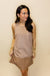 Slip into effortless elegance with this camel suede shift dress that's ready for anything. The contrast faux leather hem adds an unexpected edge, while the sleeveless silhouette keeps things breezy and chic. Perfect for layering over a tee or dressing up with statement jewelry, this versatile piece transitions seamlessly from casual coffee dates to evening adventures. Soft suede meets modern attitude—because sometimes the best looks are the ones that don't try too hard.