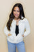 Embrace cozy charm with this Ivory Ruffle Detail Quilted Jacket. Its oversized, ruffled collar adds a flirty twist, while the soft quilted fabric keeps you snug. Patch pockets bring practical flair, and the long sleeves with subtle cuffs complete this playful, stylish layer perfect for chilly days.