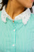 Embrace the season in this charming Jade Stripe Lace Button Top! Featuring delicate lace detailing and soft striping, this short-sleeve beauty strikes the perfect balance between sweet and sophisticated. The classic button front makes it effortlessly versatile—dress it up for brunch or keep it casual with your favorite jeans. Perfect for spring days when you want to feel put-together and pretty without trying too hard. A wardrobe essential that's as fun to wear as it is flattering.