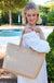 This oversized straw quilted tote is the perfect blend of style and functionality. It has ample space for all your essentials whether for business, travel, or leisure. The neutral vegan leather trim makes it perfect to pair with any outfit. It's top zipper closure ensures security, while comfortable handles make it easy to carry. Inside, you'll find two open pockets and one zippered pocket to keep your items organized and accessible. It also has feet on the bottom of the bag for extra added protection.