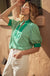 Kelly Green Contrast Detail Stripe Top