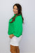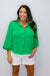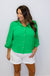 Kelly Green Ruffled Neckline Button Down Crinkle Top