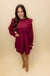 Unleash your inner fashionista with our Maroon Solid Ruffle Detail Dress! This skater dress features a frilly neck and ruffled shoulders, complemented by long poet sleeves and a wide hemline. The back keyhole adds the perfect touch of flair. Get ready to turn heads in this unique and playful dress!