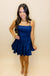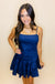 Perfect for wedding guest chic, the Navy Vertical Pleats Fit & Flare Dress combines playful charm with elegant details. Featuring a fitted bodice with vertical pintuck pleats, a straight neckline, and adjustable spaghetti straps, it offers a flattering, customizable fit. The gathered skirt adds a fun, flirty flair, while the concealed back zipper keeps the look smooth and polished—ready for celebration and dancing all night!