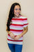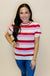 Get ready to turn heads this Valentine's Day in this adorable striped knit top! Featuring a breathable pointelle knit with eye-catching green, blue, and cream stripes, it's the perfect blend of retro charm and modern playfulness. The short puff sleeves add a flirty touch while the fitted body keeps things flattering. A classic crew neckline and ribbed cuffs complete the sporty-chic vibe. Slip it on for an effortless, comfortable look that's sure to impress—whether you're celebrating love or just spreading good vibes.