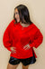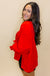 Elevate your cozy style with this Red Velvet Bow Sweatshirt. Featuring a playful oversized fit, high-low hem, and charming velvet embroidery bow, it adds a fun twist to your casual wardrobe while keeping you comfy all day. Perfect for those who love a blend of snug and stylish!