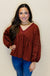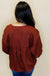 This Rust Embroidered 3/4 Sleeve Top brings cozy vibes with a playful twist. Featuring delicate embroidered cutout sleeves and charming gathers at the front and back yoke, it’s lightweight and woven for comfort without being sheer. Perfectly unlined, it’s an easy, breezy choice for crisp fall days that want a touch of fun flair.