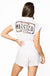 Celebrate your big day in style with this stunning White Rhinestone 'Just Married' Romper by Queen of Sparkles. Dazzling rhinestones shimmer across the entire piece, while the back showcases a fully sequined license plate declaring your newlywed status. The front features a convenient zip closure and adjustable tie waist for a flattering, customizable fit. Perfect for honeymoon adventures, bridal parties, or making a sparkly statement wherever your love takes you.