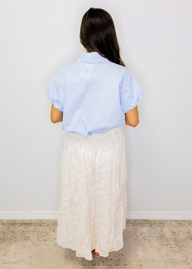 Effortlessly chic and oh-so-charming, this light blue cotton-poplin blouse is your new go-to for elevated casual looks. Romantic puff sleeves and a...