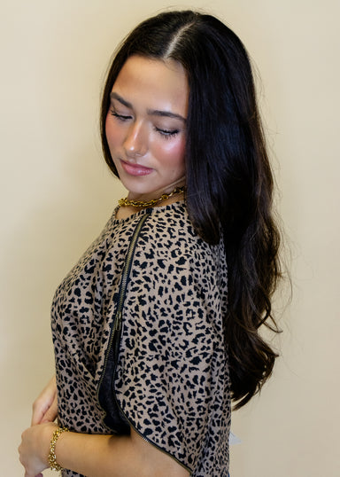 Strut into the office or out on the town in this leopard zipper sleeve top! The playful animal print pairs perfectly with practical short sleeves, ...