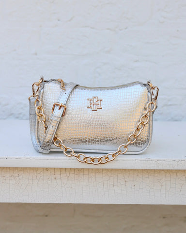 The Joan Crossbody in Silver EC. This fabulous vegan croc crossbody is a wonderful size for travel and everyday wearing! It is made with a croc, v...