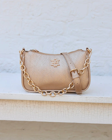 The Joan Crossbody in Woven Gold. This fabulous vegan leather crossbody is a wonderful size for travel and everyday wearing! It is made with a wov...