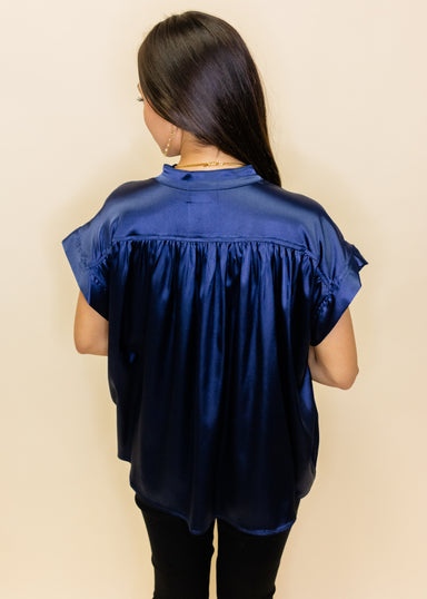 Embrace effortless style with the Emerson Navy Short Sleeve Placket Top by Adrienne Brand. Its flowy fabric sways with every move, keeping you cool...