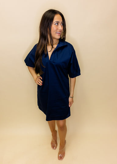 Add a dash of charm to your daily wardrobe with the Adrienne Brand Charlotte Navy Collar Dress. This cute, non-stretchy dress features a classic co...