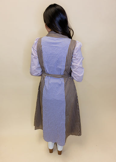 Stripes never go out of style, especially when they're paired with all the details you actually want! This midi dress features a classic collared n...