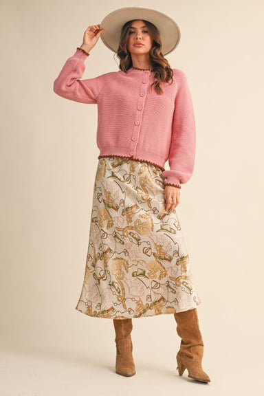 Saddle up, cowgirl! This cream western satin midi skirt is your new go-to for effortless style. Slip it on with boots and a tee for casual vibes, o...