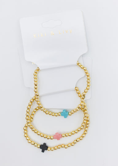 Add a touch of style and faith with our White Cross Gold Bead Bracelet. This unique bracelet features not one, but two size crosses, making it perf...