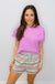 Stripes meet style in these vibrant multicolor shorts—your new summer essential. Featuring bold, eye-catching stripes and practical pockets to keep your essentials close, these shorts deliver fun and function in one breezy package. Perfect for casual outings, beach days, or whenever you want to add a pop of color to your wardrobe. Lightweight and comfortable, they're ready for whatever adventure summer brings your way.