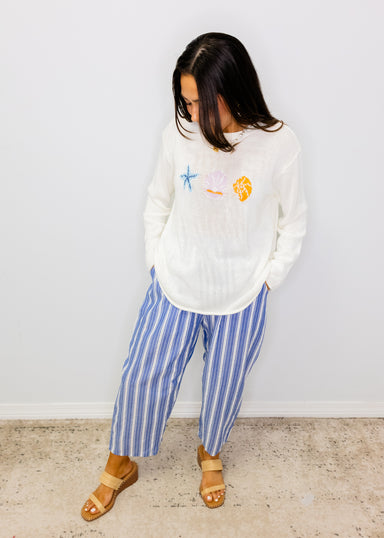 Dive into cozy charm with this delightful blue stripe crab sweater! Perfect for adding a splash of whimsy to your wardrobe, this playful knit featu...