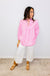 Adorable pink gingham cotton poplin top featuring a charming ruffle yoke detail and front tie closure. This playful piece brings vintage-inspired flair to your everyday wardrobe with its sweet gingham print and feminine silhouette. Perfect for casual outings, brunch dates, or whenever you want to add a touch of whimsy to your look. The breathable cotton poplin fabric keeps you comfortable all day long, while the tie front adds an interactive, customizable fit. A delightful staple that pairs effortlessly with denim, skirts, or shorts.