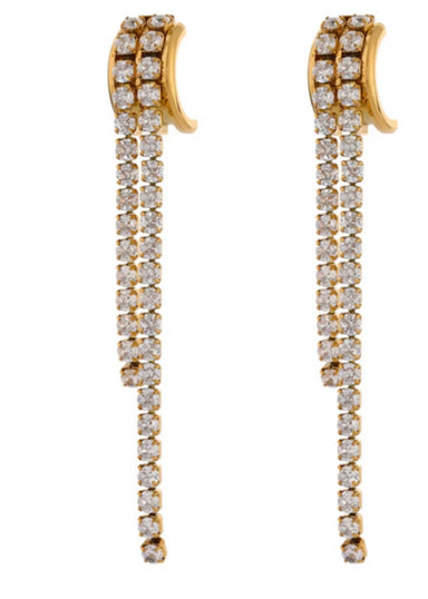 Add a touch of glam to any outfit with The Lenox Gold Rhinestone Earrings. These lightweight earrings feature a stylish triple chain design that da...