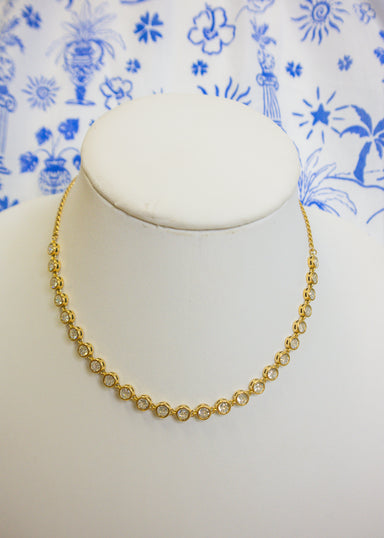 Add instant glamour to any outfit with The Roxie Gold Rhinestone Necklace! This eye-catching piece brings just the right amount of sparkle to eleva...