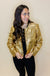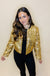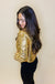Shimmer and shine in this show-stopping gold sequin crop jacket from Adrienne. Perfect for turning heads at parties, nights out, or whenever you want to add some sparkle to your look. The cropped silhouette flatters your figure while the all-over sequin detailing catches the light with every move. Dress it up over a slip dress or layer it casually over basics for instant glam. Your moment to sparkle is here!