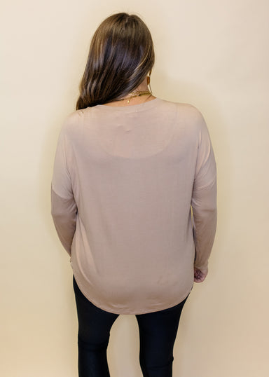 Experience effortless style with this versatile taupe Crewe Long Sleeve Top. The classic round neckline and long sleeves provide comfort and the re...
