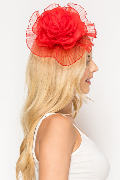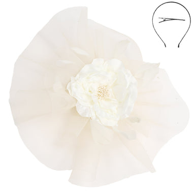 3-IN-1 ROSE BLOOM FASCINATOR WITH HEADBAND BROOCHE PIN AND HAIR CLIP BACKINGS HEIGHT: 10" WIDTH: 10"