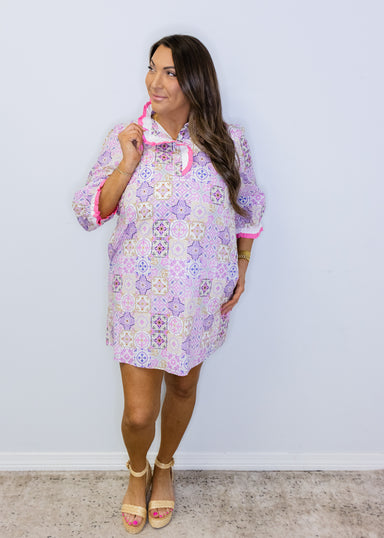 Elevate your spring wardrobe with this stunning Purple Boho Print Shift Dress—a playful yet polished piece that effortlessly transitions from Easte...