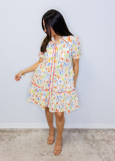 This adorable spring essential combines style with practicality! A vibrant floral print takes center stage on this mini dress, while puffy bubble s...