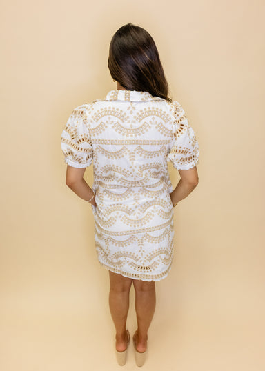 Slip into effortless vacation vibes with this charming mini dress! Featuring delicate shell trim detailing along the neckline and hem, it's the per...